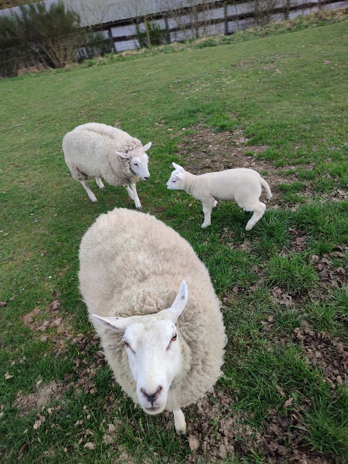 Quoi de mieux que des moutons pour partager les pâtures avec nos chevaux et ainsi participer à la gestion des prairies en se nourrissant des herbes délaissées par les équidés.  De plus, Suprise, Pumba et Demany sont heureux de nous offrir leur belle toison de laine au printemps pour le bonheur de notre portager et participer au paillage de nos légumes.
